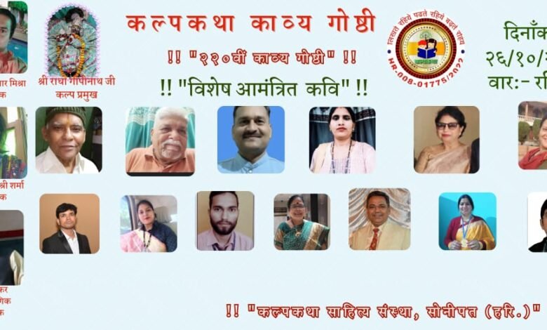 प्रभु श्री राधा गोपीनाथ जी महाराज की कृपा से संचालित राष्ट्र प्रथम, हिन्दी भाषा, सनातन संस्कृति, एवं सद साहित्य हेतु कृत संकल्पित कल्पकथा साहित्य संस्था परिवार की संवाद प्रभारी ज्योति राघव सिंह ने बताया कि लोक आस्था के मंगल उत्सव छठ महापर्व विशेष २२०वीं काव्य संध्या छठी मईया की भक्ति आराधना को समर्पित रही।