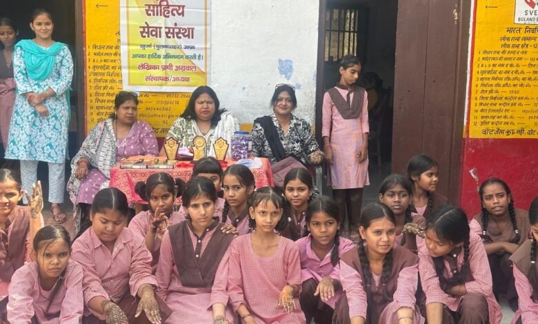 करवा चौथ के शुभ अवसर पर मधुमंजरी फाउंडेशन द्वारा खुर्जा स्थित कस्तूरबा विद्यालय में मेहंदी प्रतियोगिता का आयोजन किया गया। जिसमें बालिकाओं ने बढ़ चढ़कर हिस्सा लिया। संस्था अध्यक्ष रिंकी अग्रवाल ने बताया कि बालिकाओं में हुनर विकसित करने और व्यावसायिक दक्षता लाने के लिए इस तरीके के कार्यक्रम महत्वपूर्ण होते हैं। संस्था का उद्देश्य बेटियों की शिक्षा और रोजगार परक संबंधी कार्य सिखाना है।