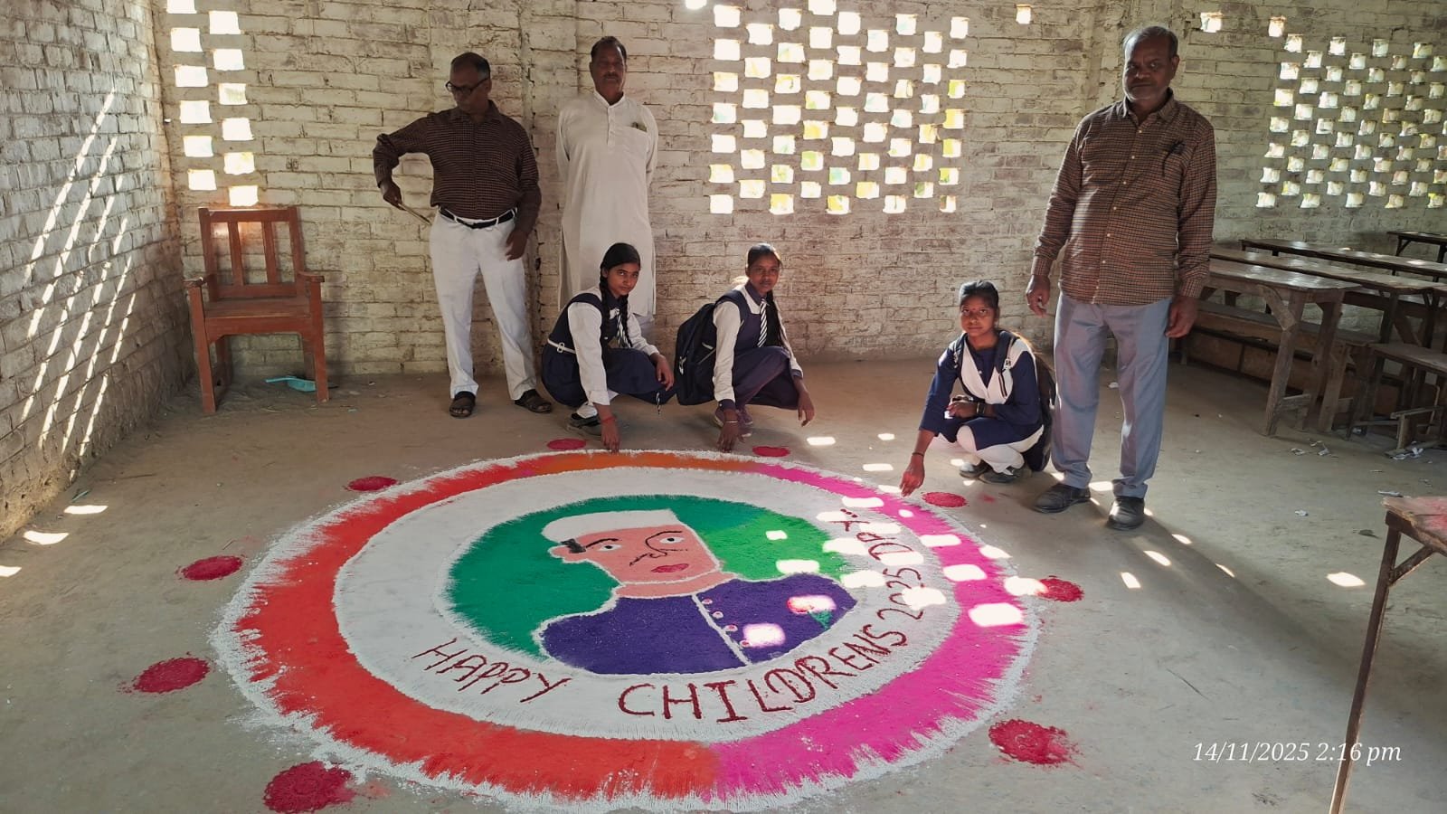 बाल दिवस पर रंगोली के माध्यम से छात्राओं ने दिया पर्यावरण संरक्षण का संदेश