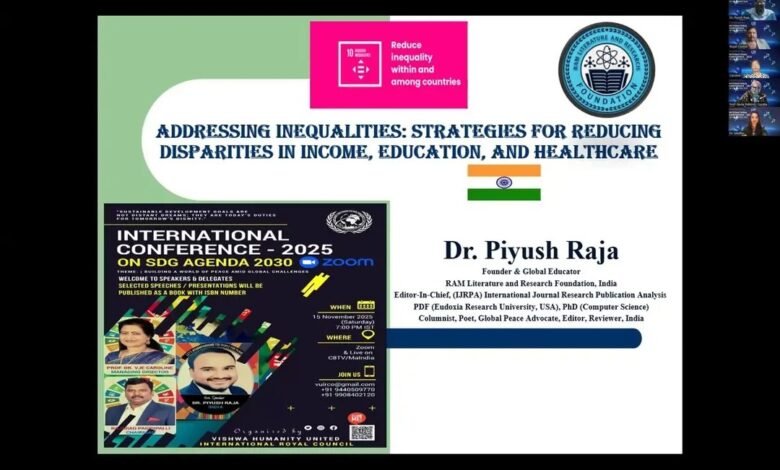 एसडीजी एजेंडा 2030 पर आयोजित अंतर्राष्ट्रीय सम्मेलन 2025 में एक महत्वपूर्ण संबोधन में, वैश्विक शिक्षाविद् डॉ. पीयूष राजा ने आय, शिक्षा और स्वास्थ्य सेवा में असमानताओं से निपटने की तत्काल आवश्यकता पर जोर दिया, जो लाखों भारतीयों और दुनिया भर के लोगों की प्रगति में बाधा बन रही हैं।