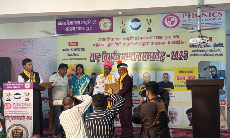 योगेश शिक्षा, कला, संस्कृति एवं पर्यावरण उत्थान ट्रस्ट, हरिद्वार व फॉनिक्स यूनिवर्सिटी, रुड़की (हरिद्वार) के संयुक्त तत्वावधान में रुड़की (हरिद्वार) में 02 नवम्बर 2025 को प्रथम राष्ट्र विभूति सम्मान समारोह आयोजित किया गया, जिसमें उत्तर प्रदेश के प्रयागराज से वरिष्ठ साहित्यकार, संपादक तथा वागीश्वरी काव्य निर्झरिणी के संस्थापक अध्यक्ष डॉ अर्जुन गुप्ता गुंजन को राष्ट्र विभूति सम्मान-2025 से सम्मानित किया गया।