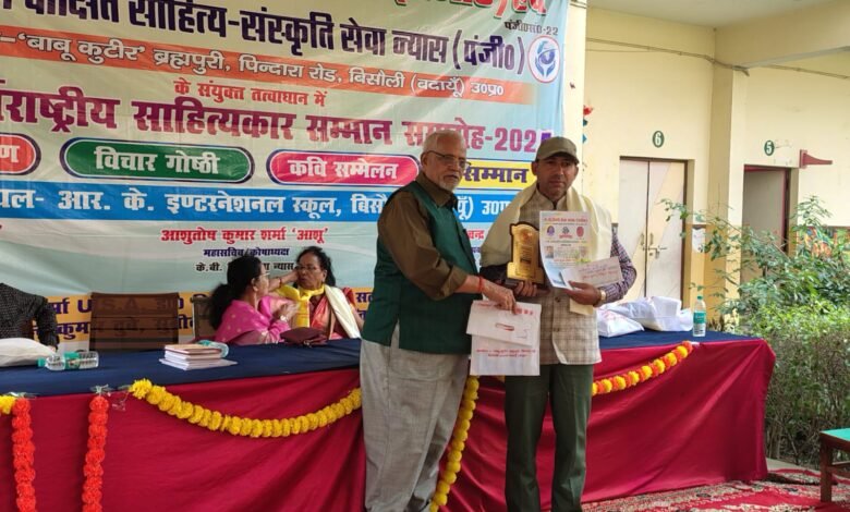 चंदौसी । कवि मुकेश कुमार दीक्षित “शिवांश” को हिंदी सेवा न्यास, बिसौली एवं डॉ. मिथिलेश दीक्षित साहित्य संस्कृति सेवा न्यास के संयुक्त तत्वावधान में आयोजित ग्यारहवें अंतरराष्ट्रीय साहित्यकार सम्मान समारोह – 2025 में “काव्य भूषण श्री सम्मान” से नवाज़ा गया।