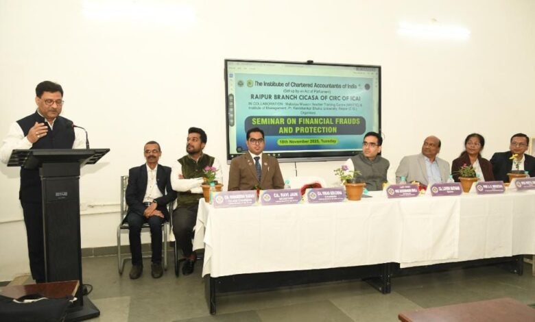रायपुर।सीआईआरसी ऑफ आईसीएआई के रायपुर ब्रांच सिकासा द्वारा मालवीय मिशन टीचर ट्रेनिंग सेंटर ( एमएमटीटीसी) और पं. रविशंकर शुक्ल विश्वविद्यालय के इंस्टीट्यूट ऑफ मैनेजमेंट के सहयोग से वित्तीय धोखाधड़ी और संरक्षण विषय पर सेमिनार का सफल आयोजन किया गया। यह कार्यक्रम इंस्टीट्यूट ऑफ मैनेजमेंट, पं. रविशंकर शुक्ल विवि रायपुर में आयोजित हुआ।