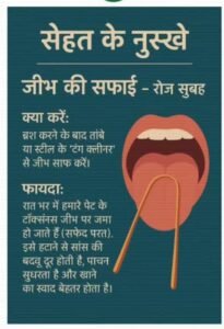श्री सिंह ने कहा कि जीभ पर जमी सफेद या पीली परत वास्तव में बैक्टीरिया और विषैले तत्वों का जमाव होती है, जिससे मुंह की दुर्गंध, दांतों में कीड़ा लगना, मसूड़ों की सूजन, पायरिया और संक्रमण जैसी समस्याएं उत्पन्न हो सकती हैं। यदि समय रहते जीभ की सफाई न की जाए तो यह संक्रमण धीरे-धीरे पाचन तंत्र और संपूर्ण स्वास्थ्य को भी प्रभावित कर सकता है।
