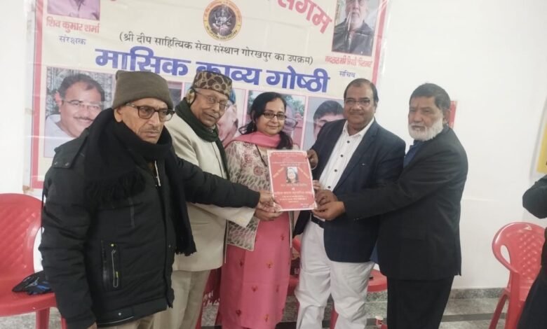 देव दीप साहित्य संगम मासिक गोष्ठी माह के अन्तिम रविवार को विश्वकर्मा मन्दिर गोरखनाथ गोरखपुर संरक्षक श्री शिवकुमार शर्मा सचिव श्री नन्द लालमणि त्रिपाठी,अध्यक्ष श्री दिनेश गोरखपुरी के दिशा-निर्देशन में कवि गोष्ठी सम्पन्न हुआ।