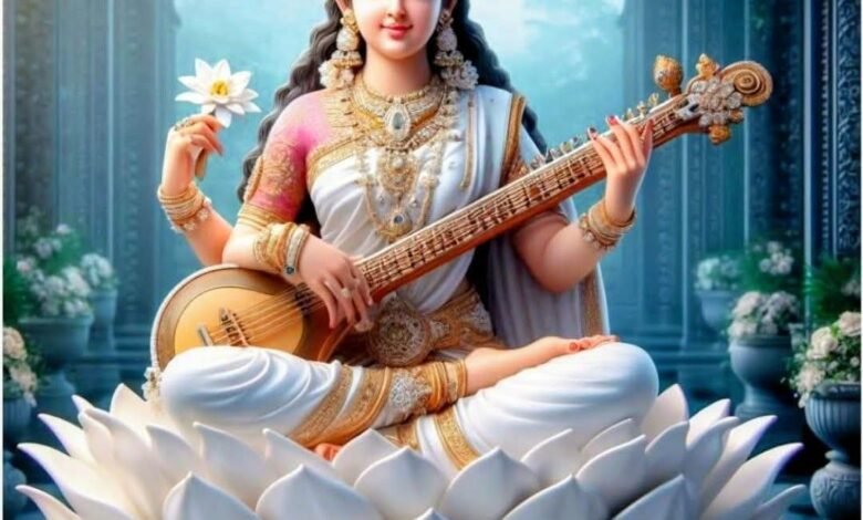 सरस्वती मां सज रहीं पहन श्वेत परिधान,