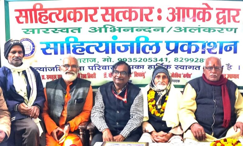 प्रयागराज। मौलिक विचार एवं साहित्यिक सर्जना की प्रतिनिधि पत्रिका साहित्यांजलि प्रभा द्वारा प्रवर्तित साहित्यांजलि प्रकाशन प्रयागराज इस माह का साहित्य रत्न सम्मान वरिष्ठ साहित्यकार शिवमूर्ति सिंह को प्रदान किया गया ।