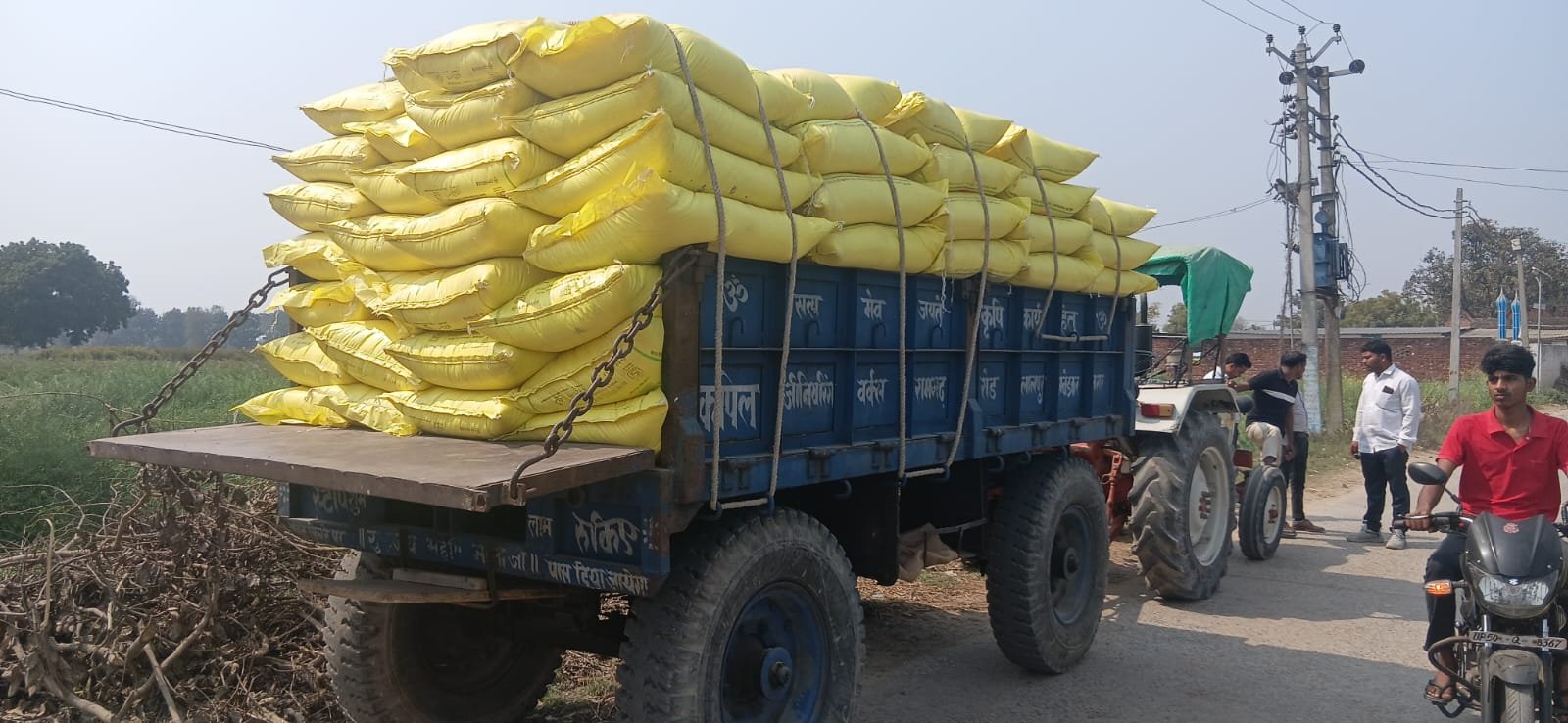 साधन सहकारी समिति पारा मिश्रौली से 136 बोरा यूरिया कालाबाजारी के लिए टैक्टर से लेजाई जा रही थी किसानों ने घेर कर पकड़ा