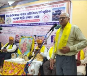 प्रसिद्ध कवि ईश्वर चन्द्र विद्यावाचस्पति अंतरराष्ट्रीय भारत नेपाल साहित्यिक महाकुंभ स्मृति सम्मान पत्र से सम्मानित