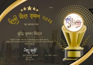 अंतर्राष्ट्रीय साहित्य अर्पण (दुबई) द्वारा प्रतिवर्ष राष्ट्रभाषा हिंदी के प्रचार प्रसार और हिंदी साहित्य के क्षेत्र में उत्कृष्ट योगदान देने वाले सभी रचनाकारों लेखको को हिंदी गौरव सम्मान से सम्मानित किया जाता है। मंच की सी ई ओ (दुबई) में रहने वाली नेहा शर्मा द्वारा हिंदी में लेखन कार्य करने वाले लेखक, रचनाकार, जयपुर के सुरेंद्र कुमार बिंदल को भी प्रस्तति पत्र देकर सम्मानित किया गया।