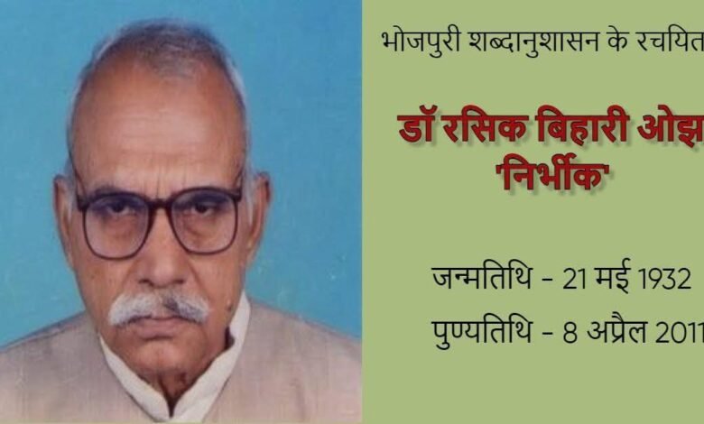 भोजपुरी में पहिला व्यवहारिक व्याकरण, बाल एकांकी संग्रह, छाया नाटक, रेखाचित्र लिखे वाला, भोजपुरी भाषा आ साहित्य के लगभग हर जरुरी विधा में अपना कलम से लिखे-सिरजना करे वाला, भोजपुरी आ हिंदी के सुप्रसिद्ध साहित्यकार रसिक बिहारी ओझा ‘निर्भीक’ जी के पुण्यतिथि प आखर परिवार बेर बेर नमन क रहल बा।