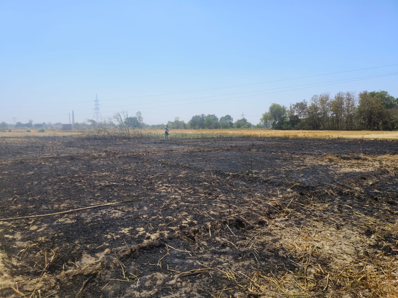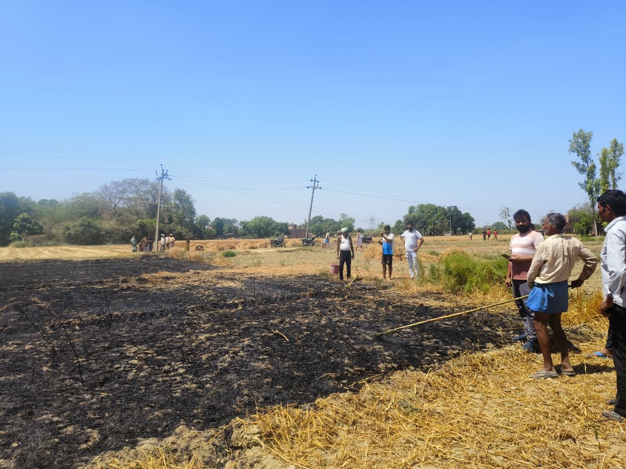 बिजली के सार्ट सर्किट से काटकर छोड़े गए गेहूं के खेत में लगी आग