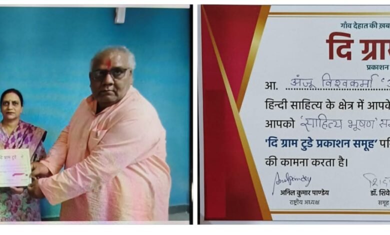 दि ग्राम टूडे प्रकाशन समूह द्वारा कवियत्री अंजू विश्वकर्मा को सम्मान