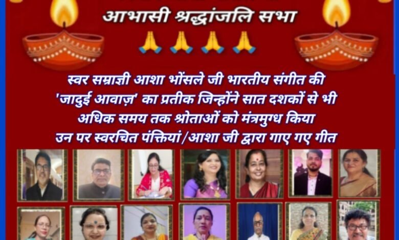 मंच की अध्यक्षा एवं वरिष्ठ सदस्यों ने अपने उद्बोधन में कहा कि आशा भोंसले जी केवल एक गायिका नहीं, बल्कि संगीत की जीवंत विरासत थीं, जिन्होंने हर भाव – श्रृंगार, विरह, भक्ति और उत्साह, को अपने स्वरों में पिरोया।