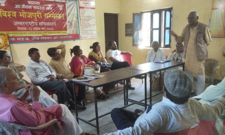 विश्व भोजपुरी सम्मेलन के अंतरराष्ट्रीय कार्यालय पर आयोजित आजीवन सदस्यों की महत्वपूर्ण बैठक में संगठन की राष्ट्रीय, प्रादेशिक एवं जनपद स्तरीय सभी इकाइयों को तत्काल प्रभाव से भंग करने का निर्णय लिया गया। यह जानकारी अंतरराष्ट्रीय महासचिव डॉ. सुधाकर तिवारी ने दी।